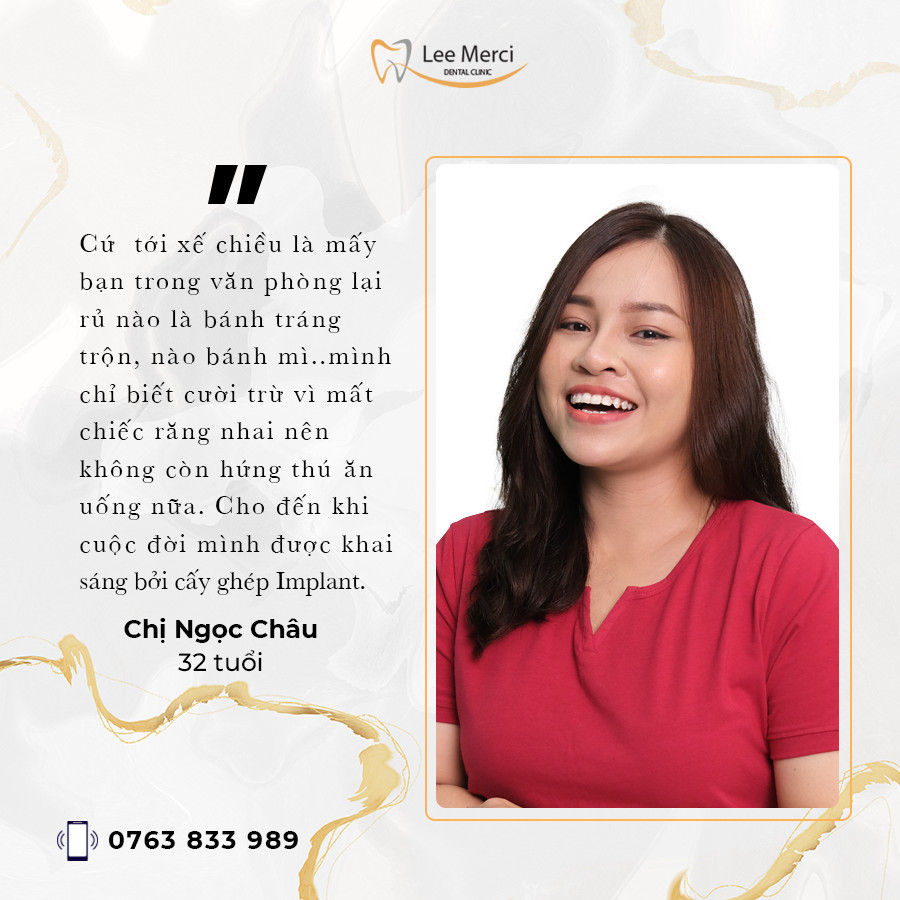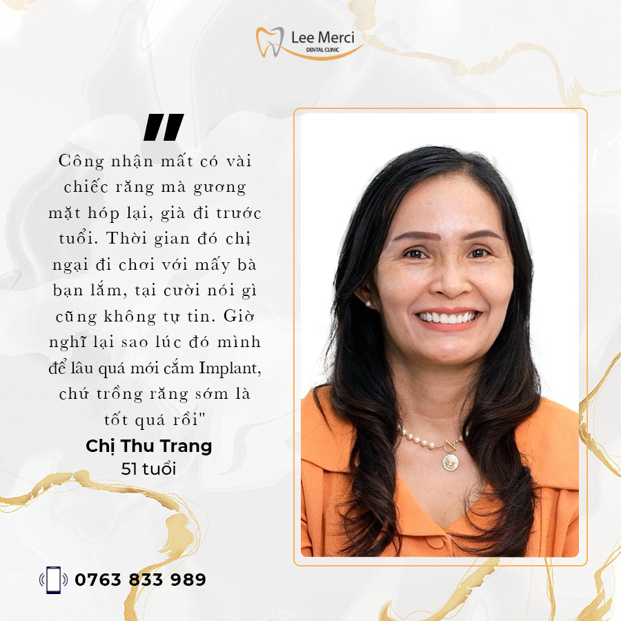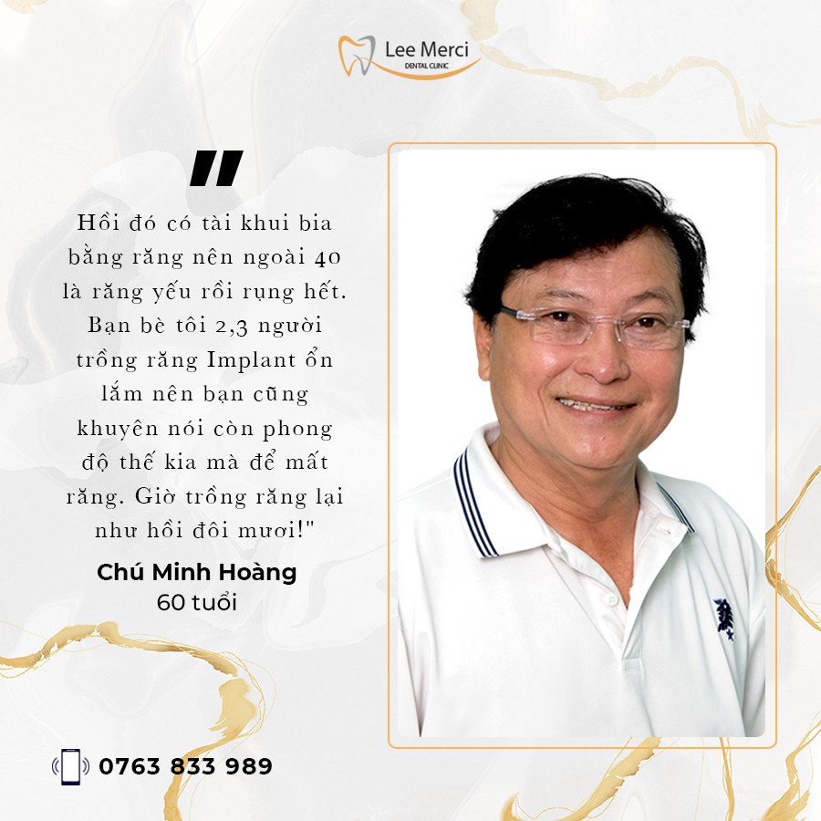 Đến với Nha khoa Quốc tế Lee Merci, khách hàng mất răng được tư vấn và cung cấp thông tin khoa học về trồng răng Implant; trải nghiệm dịch vụ đưa đến nơi, về đến chốn với xe Mercedes – Benz; hỗ trợ lưu trú ngay tại trung tâm Thành phố.
